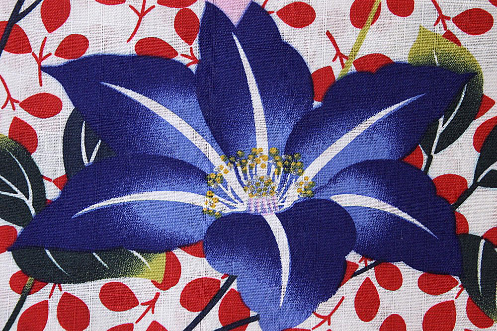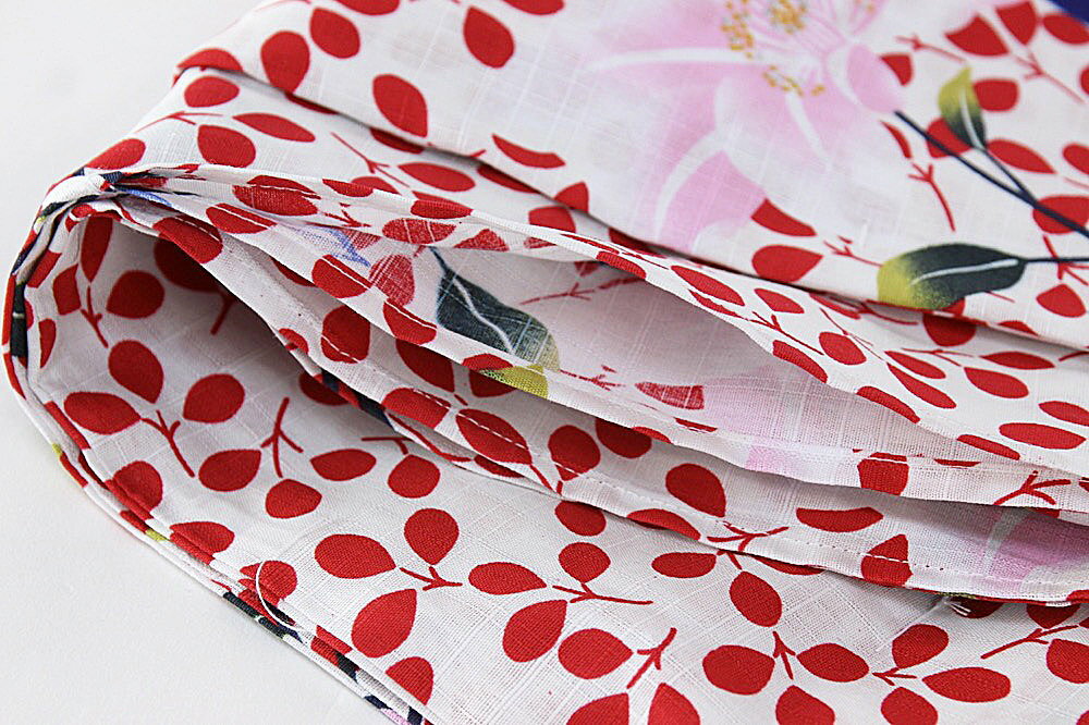 サイズ 身丈 : 約170cm 裄丈 : 約50cm 裄丈 : 約70cm 適応身長:165-173cm位 色 白×赤×紺(花) 素材 綿100% ご注意 ・新しいうちは摩擦や汗等で下着や帯に色移りする事があります。