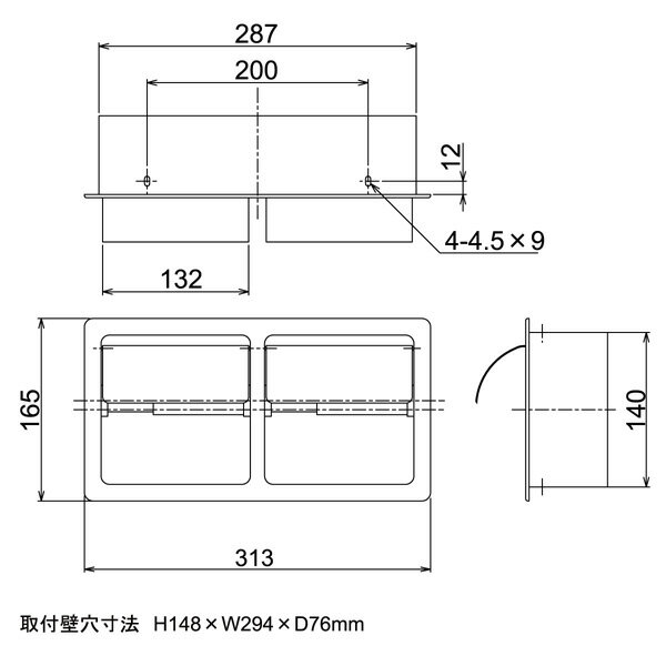 □材質:真鍮 □製品サイズ(mm):H165xW313 取付壁穴寸法:H148xW294xD76□仕上:クロムメッキ □浴室可否:浴室可 【使用紙サイズ(mm)】紙幅114±2芯の径38±1巻巻き取りの径115以下 ●この商品はメーカー取寄せ品です●この商品は複数店舗と在庫を共有しています●不具合ある商品、配送中の破損、商品の瑕疵のみ、商品の返品をお受けしております