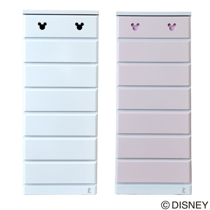 チェスト 完成品 7段 幅60 ディズニー ミッキー 国産 大川家具 おしゃれ 北欧 子供部屋 白 ピンク 収納(代引不可)【送料無料】